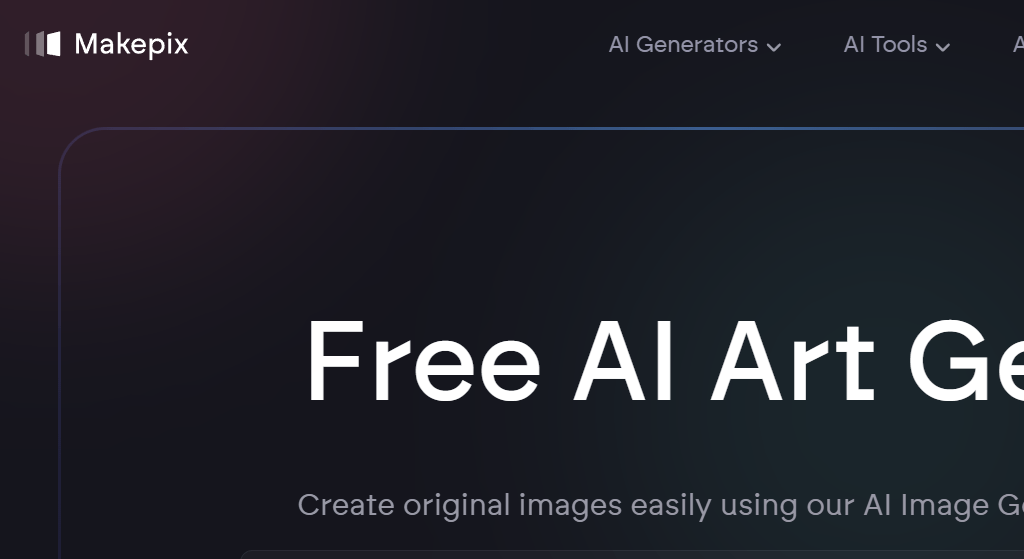 Makepix is a browser-based AI image generator that lets users create original AI art and visuals with a range of creative tools directly online. It provides multiple AI generators such as anime, character, face, cartoon, tattoo, furry, portrait, and more. The platform also includes AI editing tools like background remover, image enhancer, upscaler, and image-to-video transformation. Users can explore AI art galleries for inspiration and turn textual ideas into visuals without downloads. Images created are free to generate, with optional subscription needed for extended features.