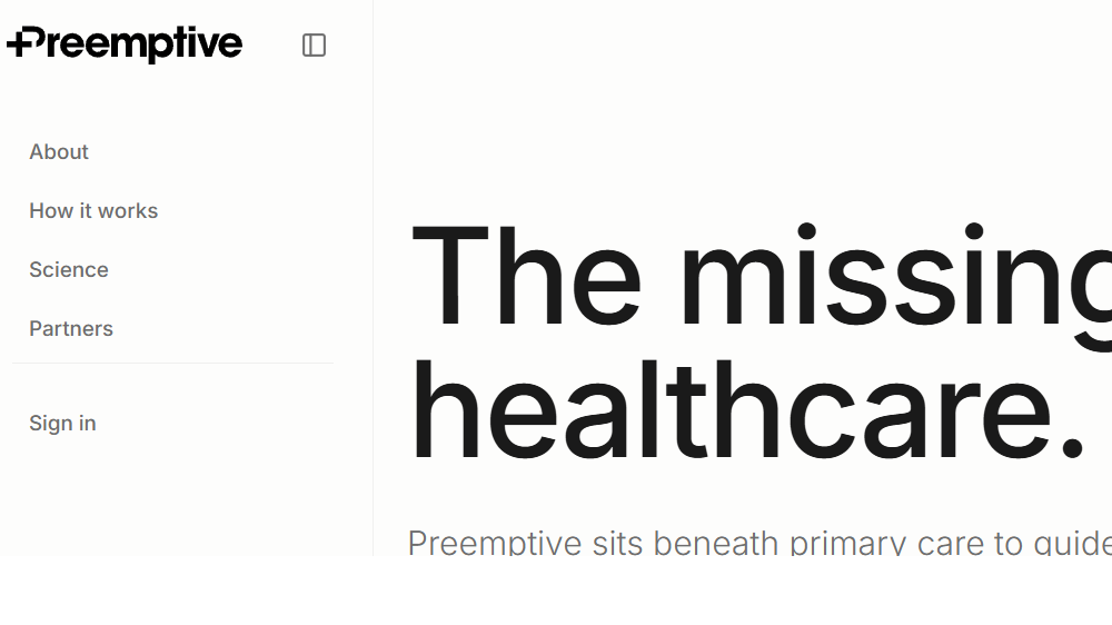 Preemptive Health is a proactive medical platform that uses advanced biological signal analysis and AI to detect subtle shifts in health before symptoms appear. Users capture data such as blood flow patterns via smartphone camera to build a personalized health baseline. The platform translates these biometric signals into actionable medical insight, enabling early detection of changes in cardiovascular, metabolic, nervous, and other systems. Preemptive Health pairs members with dedicated nurses supported by physicians and AI analytics to monitor trends, guide personalized care, and work alongside a user’s primary doctor for proactive health management.